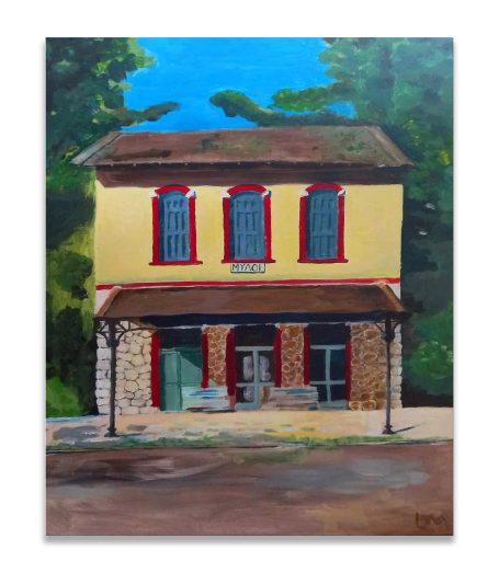 In 2022 maakte Lia dit werk in opdracht van een klant uit het Griekse Myloi. Het schilderij vangt de sfeer en het karakter van deze unieke plek en wordt door de dorpsraad gebruikt voor citymarketingdoeleinden, als een beeld dat de identiteit, geschiedenis en warmte van het dorp op een liefdevolle manier uitdraagt.